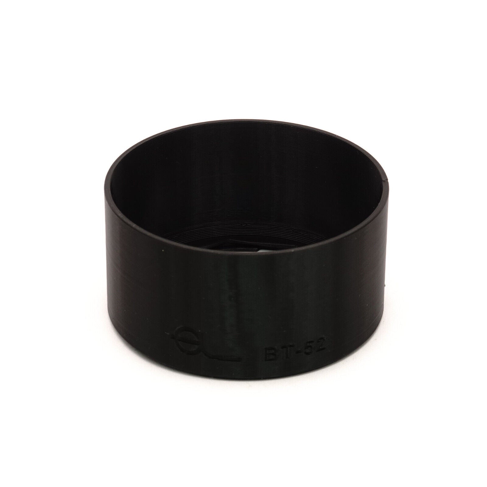 Lens hood with bayonet lock. Reproduction of the Canon BT-52 lens hood for FD and nFD lenses.