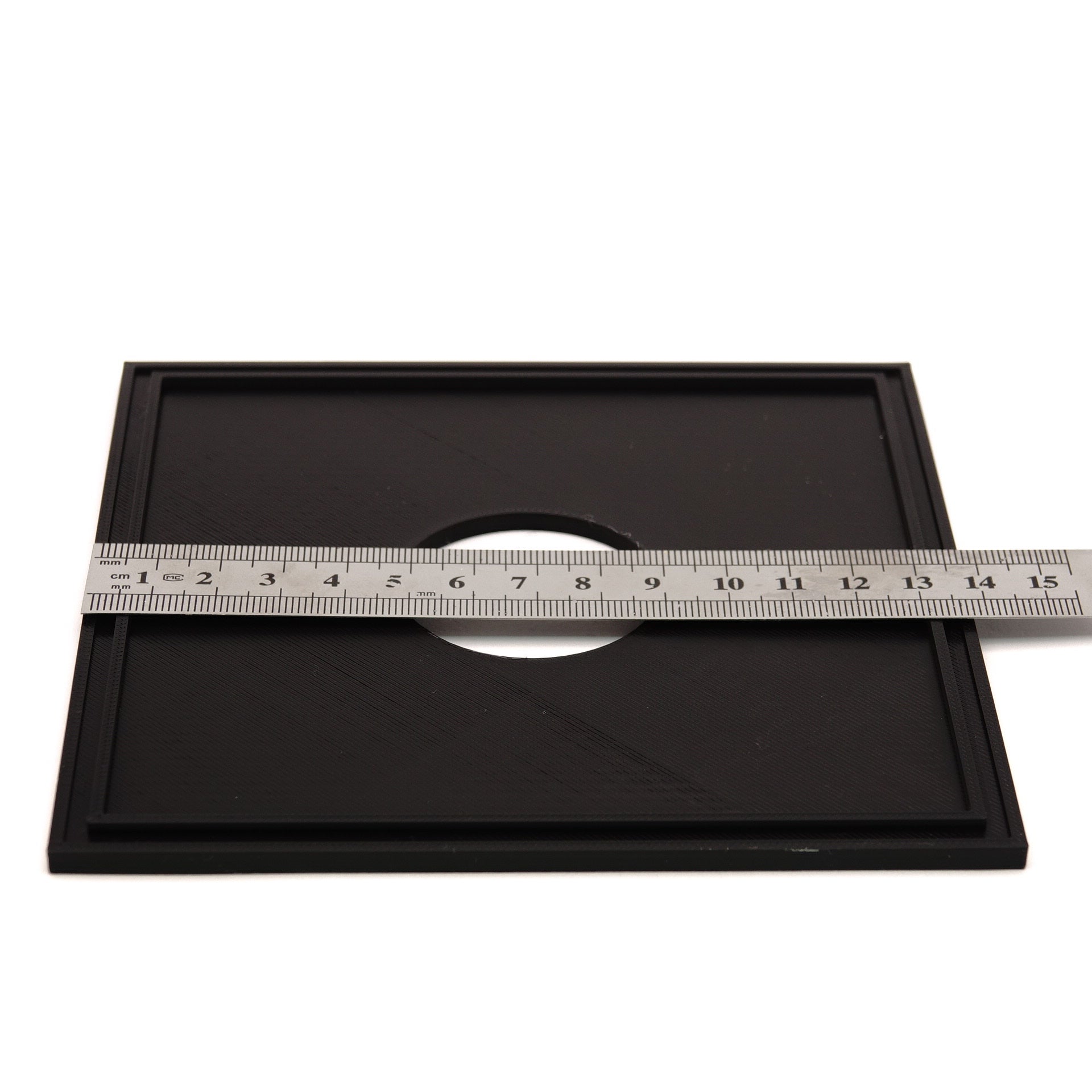 This lens board is precisely designed for the Sinar 140mm system. Made from technical plastic (PLA+), it offers a sturdy and lightweight mounting platform for your large-format lenses. Besides the standard bores for common shutters, recessed versions are also available, which especially relieve the bellows when using wide-angle lenses on cameras like the Sinar f or p and make focusing to infinity easier.