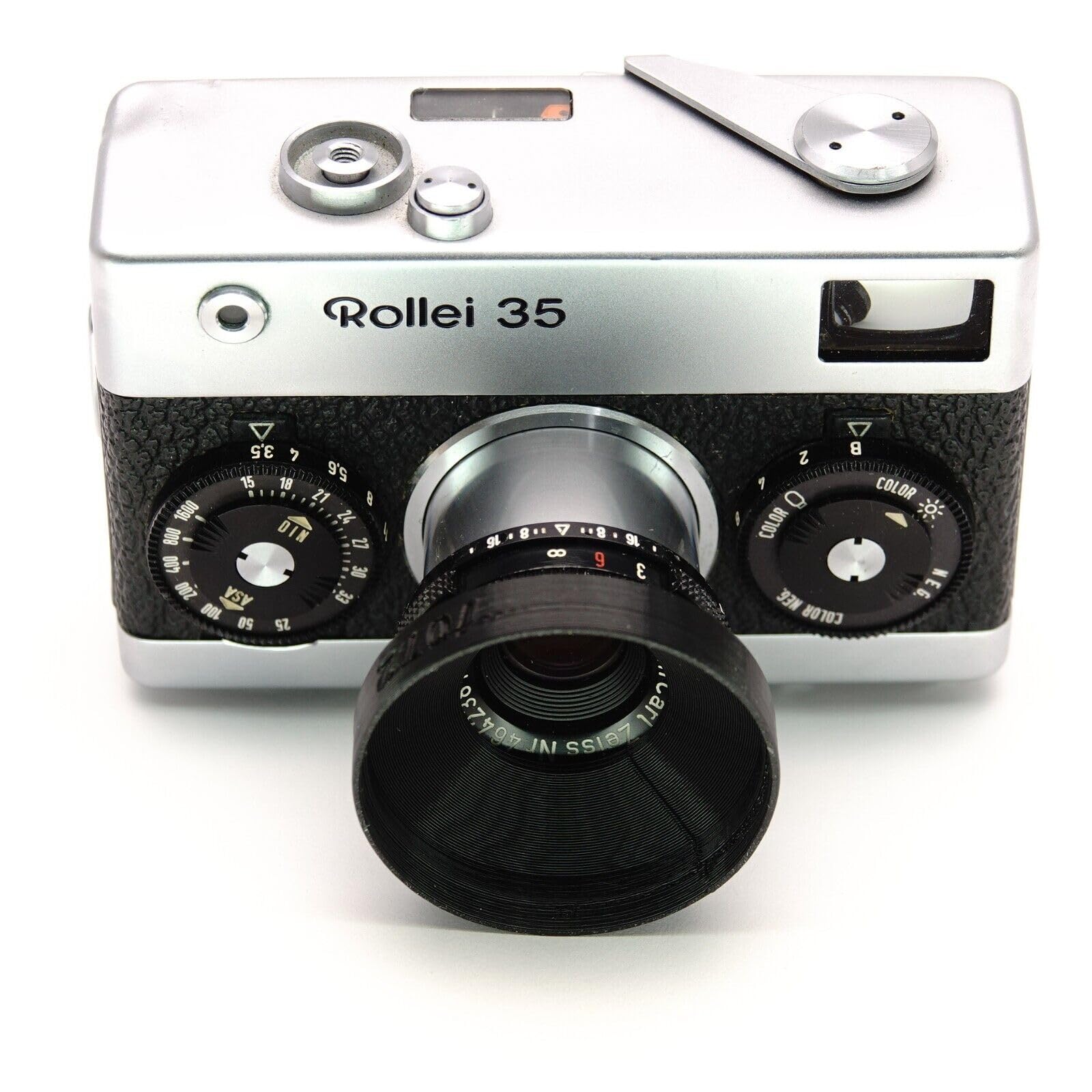 This lens hood was precisely made for all Rollei 35 models with Tessar lens (24mm filter thread). It serves two purposes: on the one hand, it protects your shots from side stray light and your lens from damage. On the other hand, it solves the problem of hard-to-find 24mm filters.
