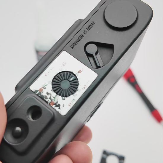 Chi usa una Minox 35 conosce il fenomeno: i numeri ISO stampati sulla ghiera di regolazione scompaiono col tempo. Abbiamo creato una soluzione duratura. Grazie alla produzione con due plastiche di colore diverso, le cifre sono inseparabilmente legate alla targhetta. Niente usura, niente sbiadimento. Il disco vecchio si rimuove facilmente e quello nuovo si fissa con una piccola goccia di colla istantanea.