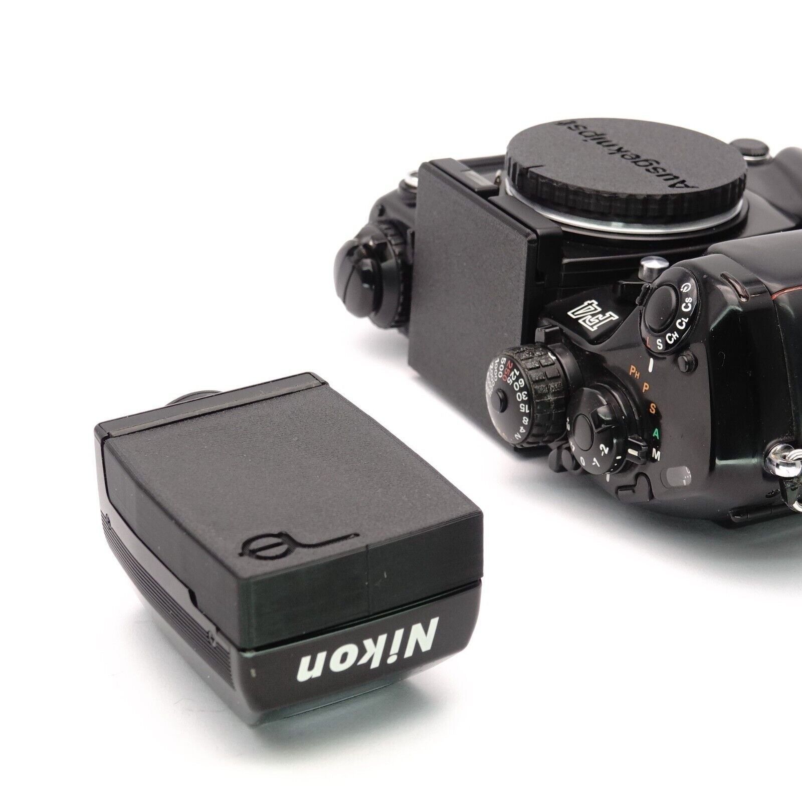 La Nikon F4 es famosa por su modularidad. Pero quien cambia entre el prisma estándar (DP-20) y el visor de pozo de luz (DW-20) a menudo se pregunta: ¿Cómo guardo el visor desmontado de forma segura? Esta tapa protectora se coloca fácilmente en la parte inferior del visor. Protege los elementos de vidrio y los contactos del polvo y los arañazos, para que tu sistema esté siempre listo para usar.
